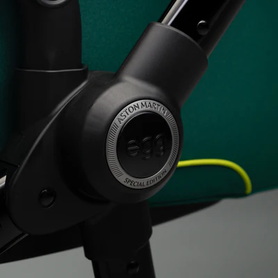 Crna konstrukcija visokog sjaja Performance Green Aston Martin egg3® kolica obogaćena je redizajniranim središnjim čvorištem sa srebrnim rubom, koje odražava rotacijske kontrole Aston Martin interijera i unosi dašak automobilske preciznosti. Savršeno se nadopunjuje s kotačima u obliku saća, inspiriranima Aston Martin Valour i Victor modelima, dok Tru-Ride® tehnologija osigurava glatku, tihu i sigurnu vožnju na svakom putovanju. Potpuna amortizacija, prednji kotači s opcijom okretanja ili blokade te prostrana košara jamče svakodnevnu praktičnost.