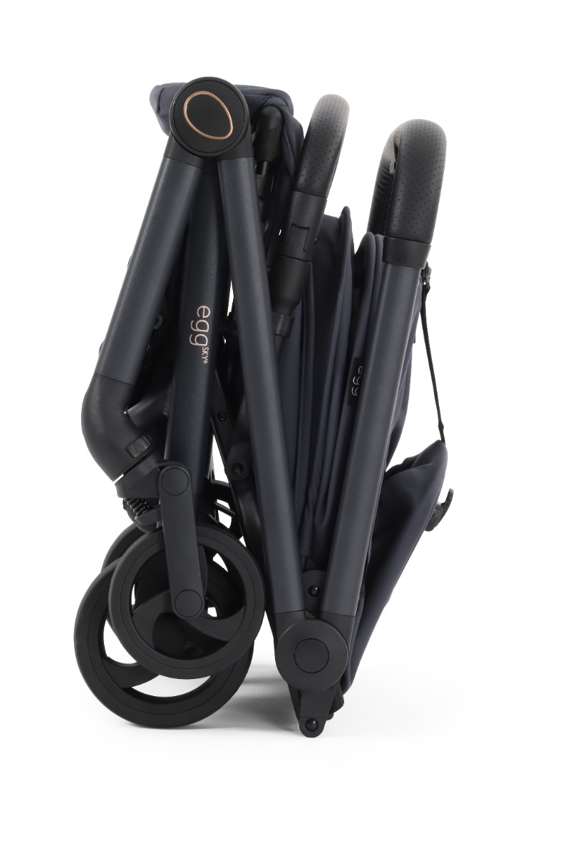S težinom od samo 8 kg i IATA cabin-approved dimenzijama*, egg Sky® savršen je suputnik na putovanjima. Kolica se sklapaju jednom rukom u kompaktni, samostojeći oblik, što ih čini jednostavnima za spremanje i nošenje. Diskretna ručka za nošenje dodatno olakšava prijelaze – bilo da ste u zračnoj luci, gradu ili na odmoru.