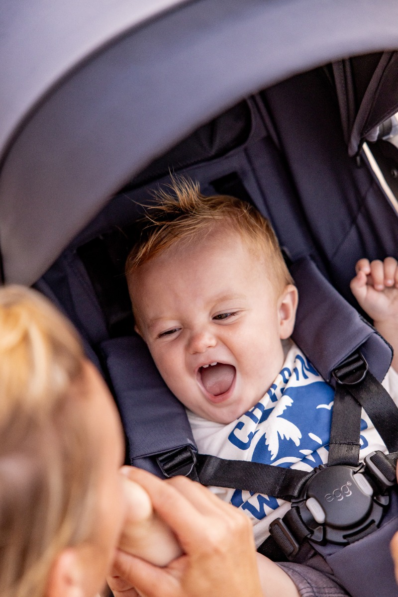 Egg Sky® ima podesivi naslon s ravnim (lie-flat) položajem, što ga čini pogodnim od rođenja pa sve do 22 kg. Veliki ventilacijski otvor na sjedištu osigurava optimalan protok zraka, dok se oslonac za noge podešava jednom rukom za maksimalnu udobnost djeteta.