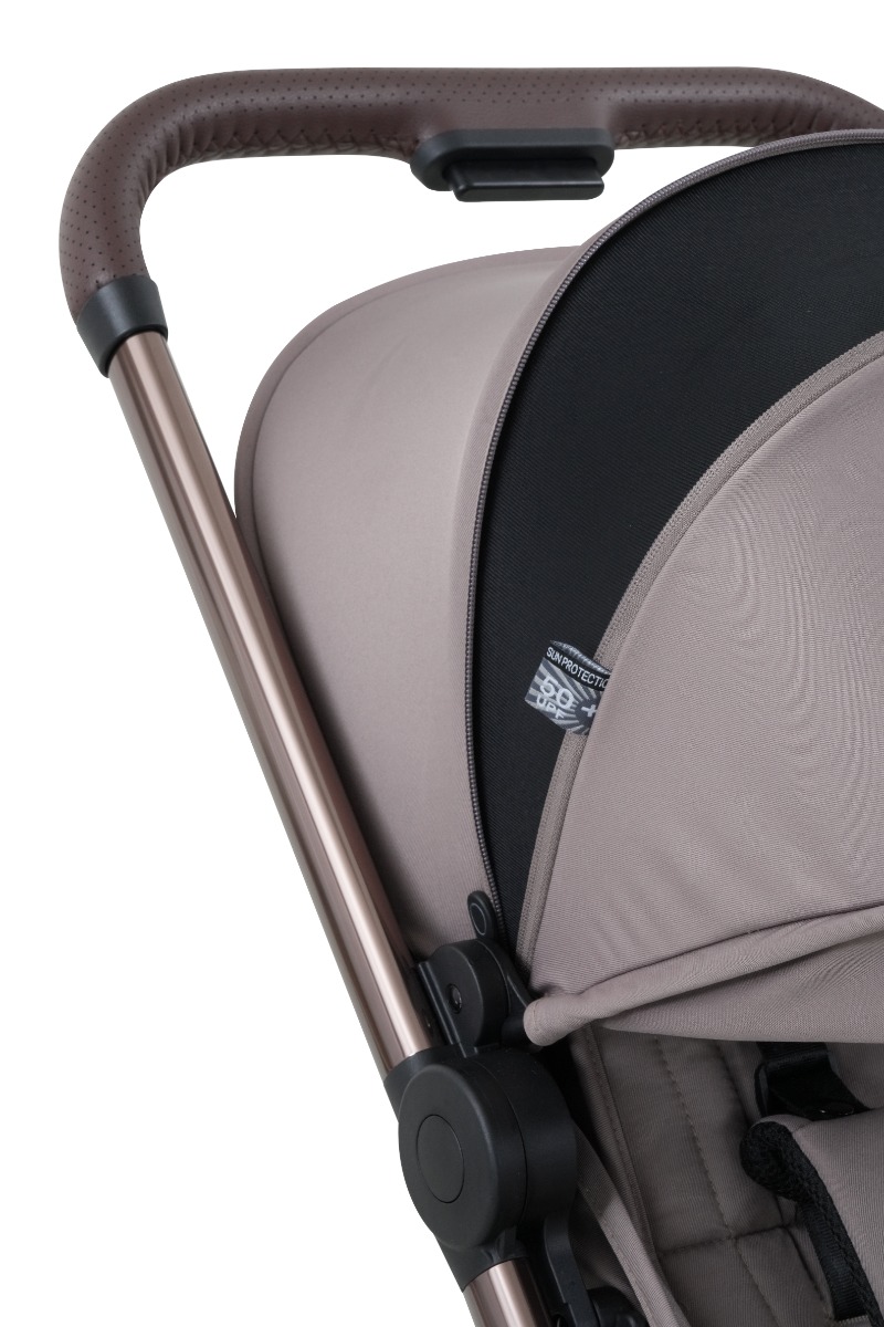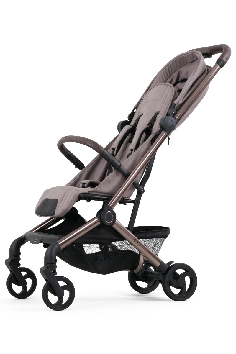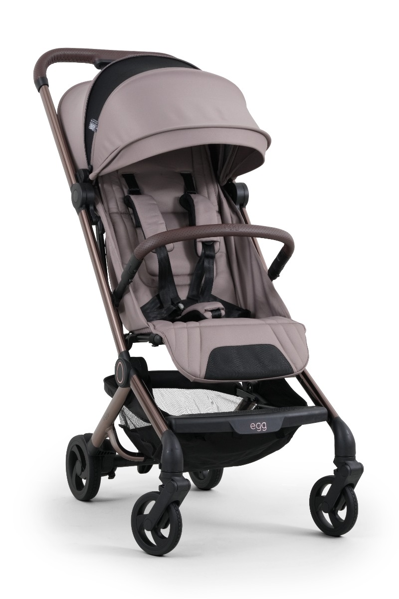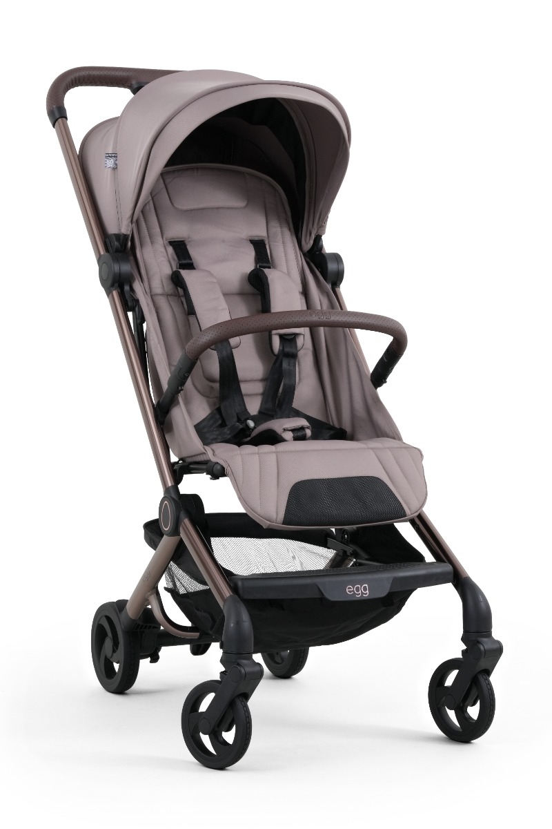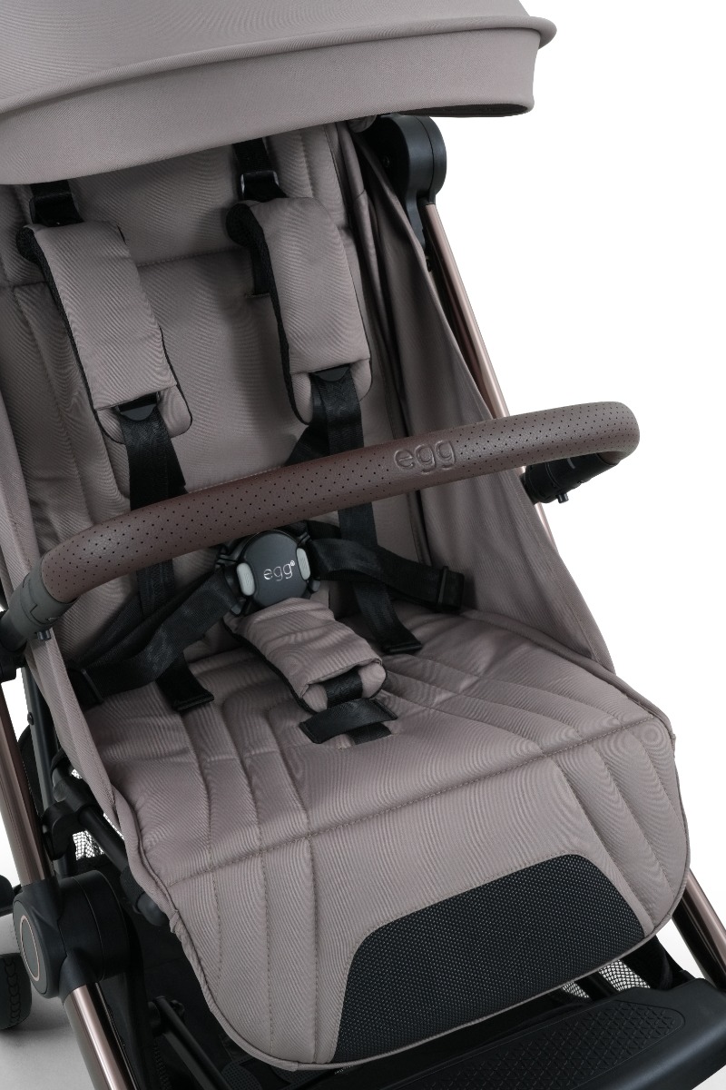 Prepoznatljiv egg® stil vidljiv je u svakom detalju – od elegantnih linija do ručno šivane kožne ručke (visina 105 cm) i uklonjive zaštitne prečke.