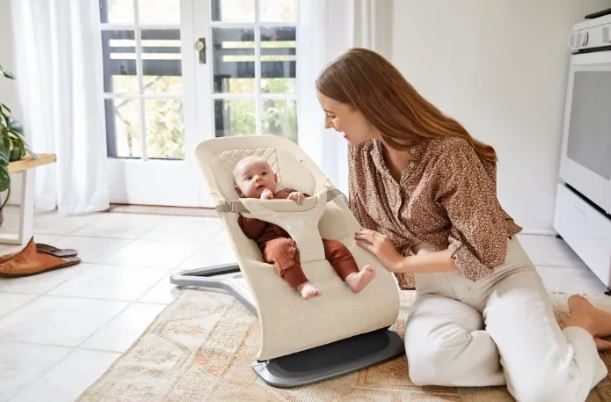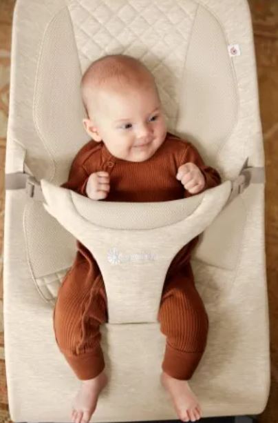 by ErgobabyUdobna ležaljka za novorođenče, umirujuća ljuljačka za bebu i zabavna dječja stolica – sve u jednom!
