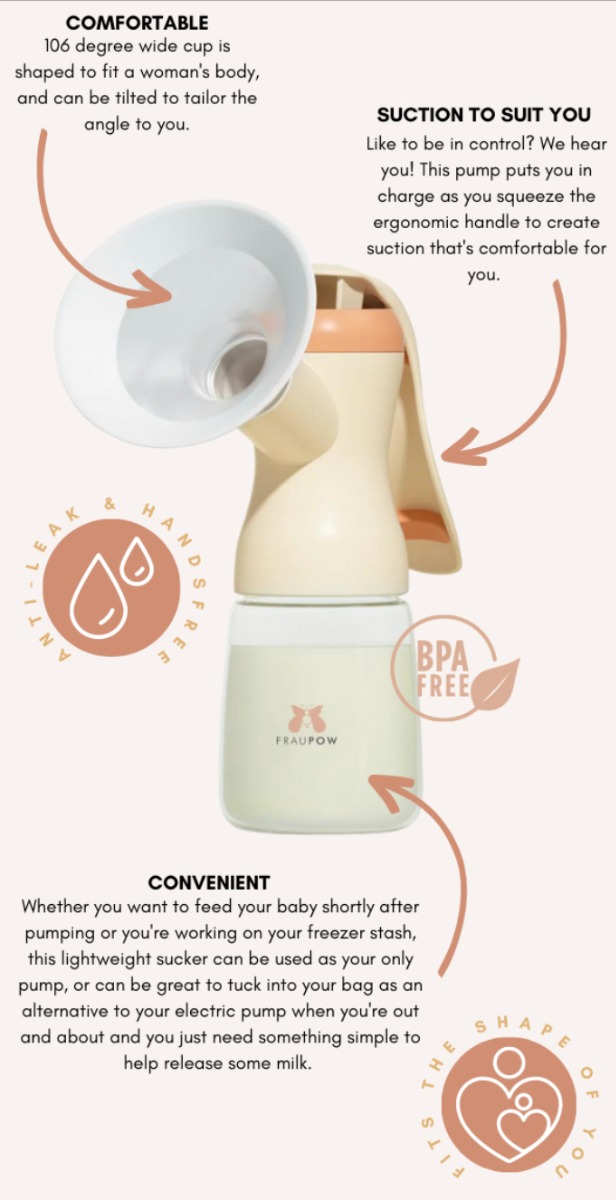 by FraupowFraupow ručna izdajalica za mlijeko idealan je izbor za mame koje žele potpunu kontrolu nad izdajanje i jednostavno, tiho rješenje bez električne energije. Lagana, praktična i jednostavna za korištenje, ova manualna izdajalica omogućuje vam da izdajate mlijeko vlastitim tempom – kad god i gdje god vam odgovara.