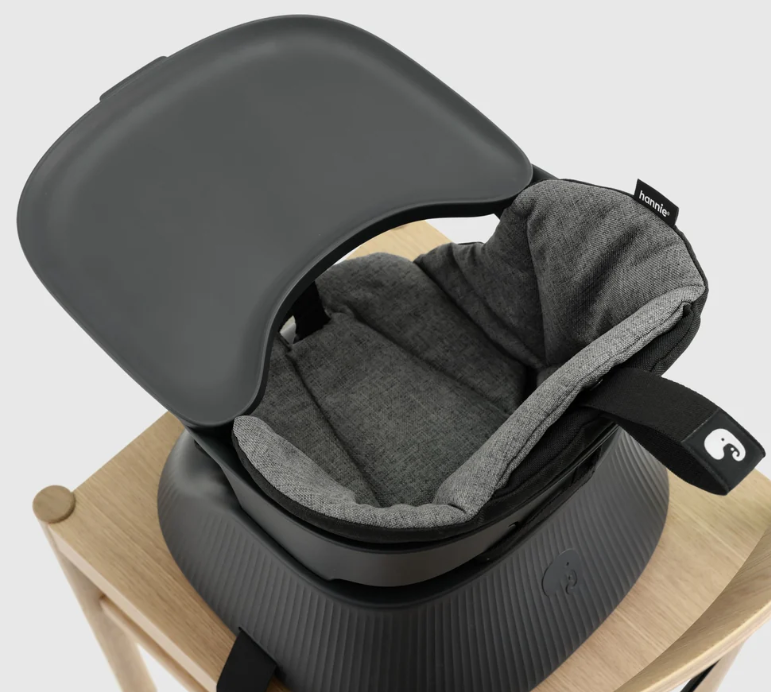 Bez obzira jeste li kod kuće, u gostima ili na putovanju – Hannie omogućuje da vaše dijete uvijek sjedi udobno, sigurno i uz vas za stolom.
