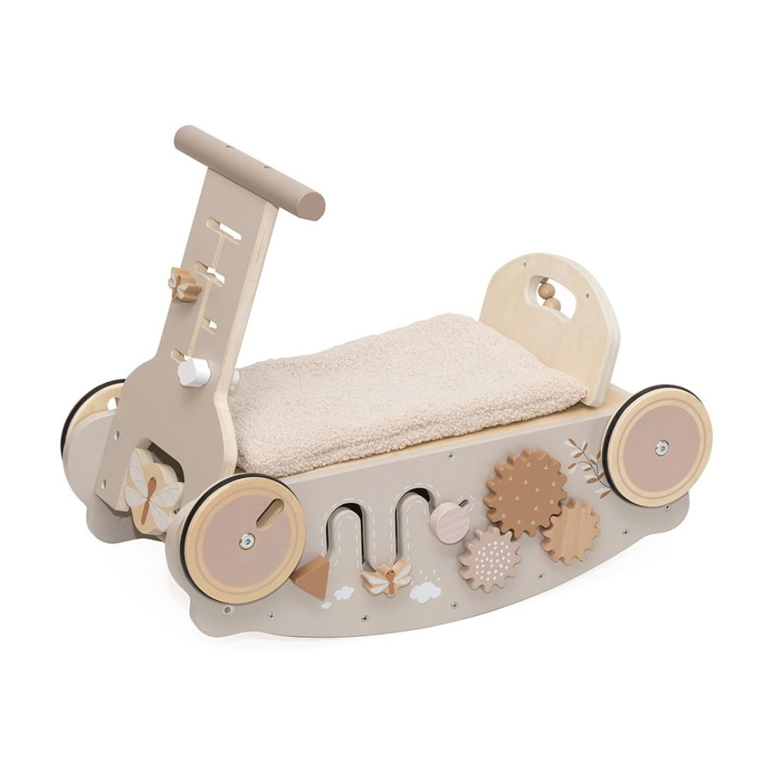 by Label LabelOva 3u1 guralica, ljuljačka i vozilo na guranje svestrani je proizvod koji raste s vašim mališanom i donosi beskrajnu zabavu te poticaj za razvoj.