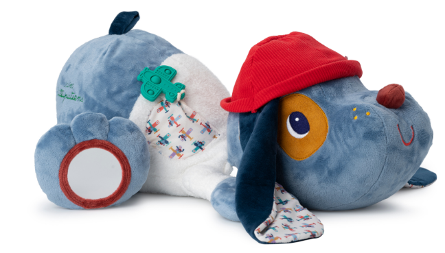 Plišani Jules potiče razvoj osjetila kroz mekane tkanine, prsten za zubiće, igračka u obliku zrakoplova koja pucketanjem izaziva veselje, te brojna druga iznenađenja koja čekaju na istraživanje. Ovaj šarmantni psić nije samo dekorativan, već nudi sate uzbudljive, ali umirujuće igre, pružajući djetetu stalnu podršku u senzornoj stimulaciji i razvoju. Svaka njegova površina nudi jedinstveno taktilno iskustvo, a raznovrsne teksture i aktivnosti omogućuju djetetu otkrivanje svijeta punog novih osjeta.