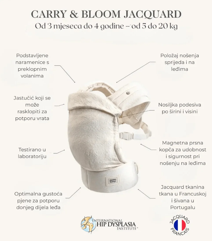 by Mama HangsAko tražite ergonomsku nosiljku koja će vas pratiti od prvih mjeseci pa sve do predškolske dobi, Mama Hangs Carry & Bloom Jacquard osmišljena je kako bi rasla zajedno s vašim djetetom – bez kompromisa u udobnosti, sigurnosti i kvaliteti.