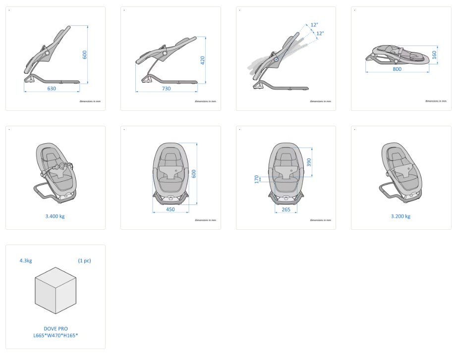 Dove Pro je prava ikona dizajna među dječjim ležaljkama. S jedinstvenim modernim krivuljama, vrhunskom završnom obradom i elegantnim efektom drva na okviru, savršeno se uklapa u suvremene interijere doma i ne narušava stil vašeg dnevnog boravka ili dječje sobe.