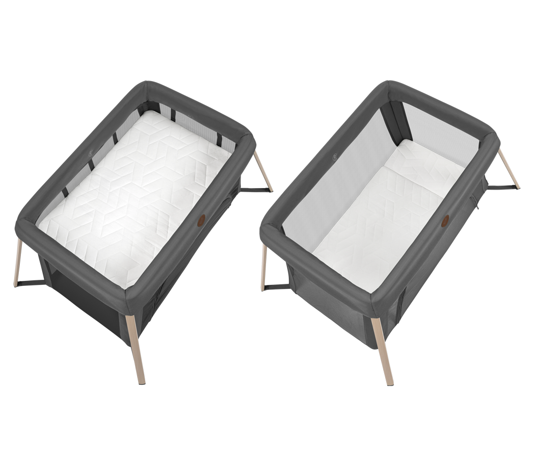 - Dvije razine spavanja - viša razina prikladna je za novorođenčad i manje bebe, kako biste ih lakše položili i podigli bez saginjanja, dok se niža razina koristi kada dijete poraste i postane pokretnije.