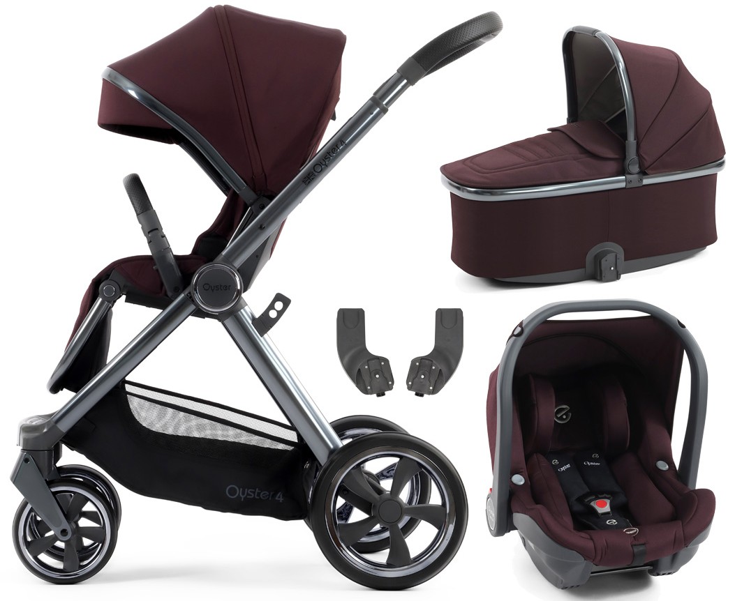 | 3u1 set Oyster4 kolica uključuje: konstrukciju, sportsko sjedalo, košaru za novorođenče, dvije kišne navlake, adaptere za autosjedalicu i Oyster Capsule autosjedalica. |