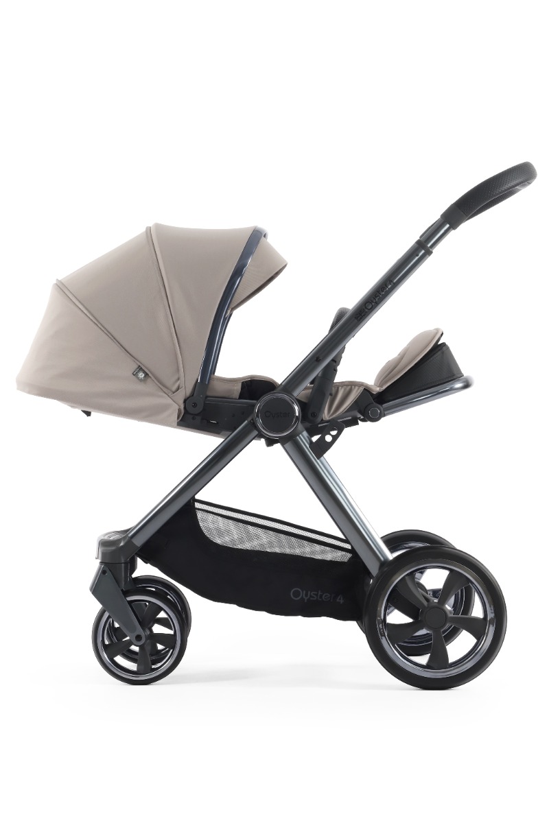 Oyster4 se lako prilagođava vašim potrebama – nudi 19 različitih konfiguracija , uključujući tandem način za blizance ili djecu bliske dobi. Kompatibilna su s Oyster košarom za novorođenče, autosjedalicom Oyster Capsule te košarom za kupovinu/pse (do 9 kg) . Uz dodatak Ride-on Board i starije dijete (do 20 kg) se može pridružiti šetnji i uživati.