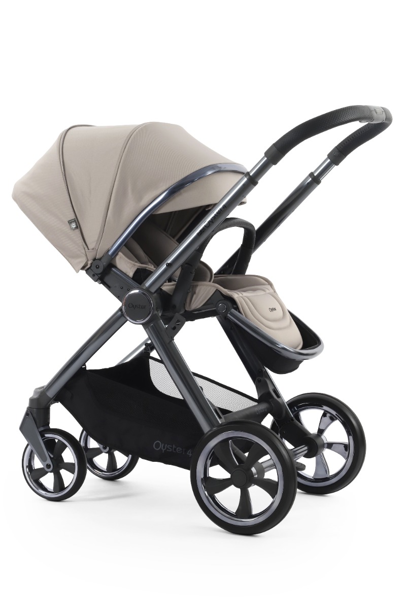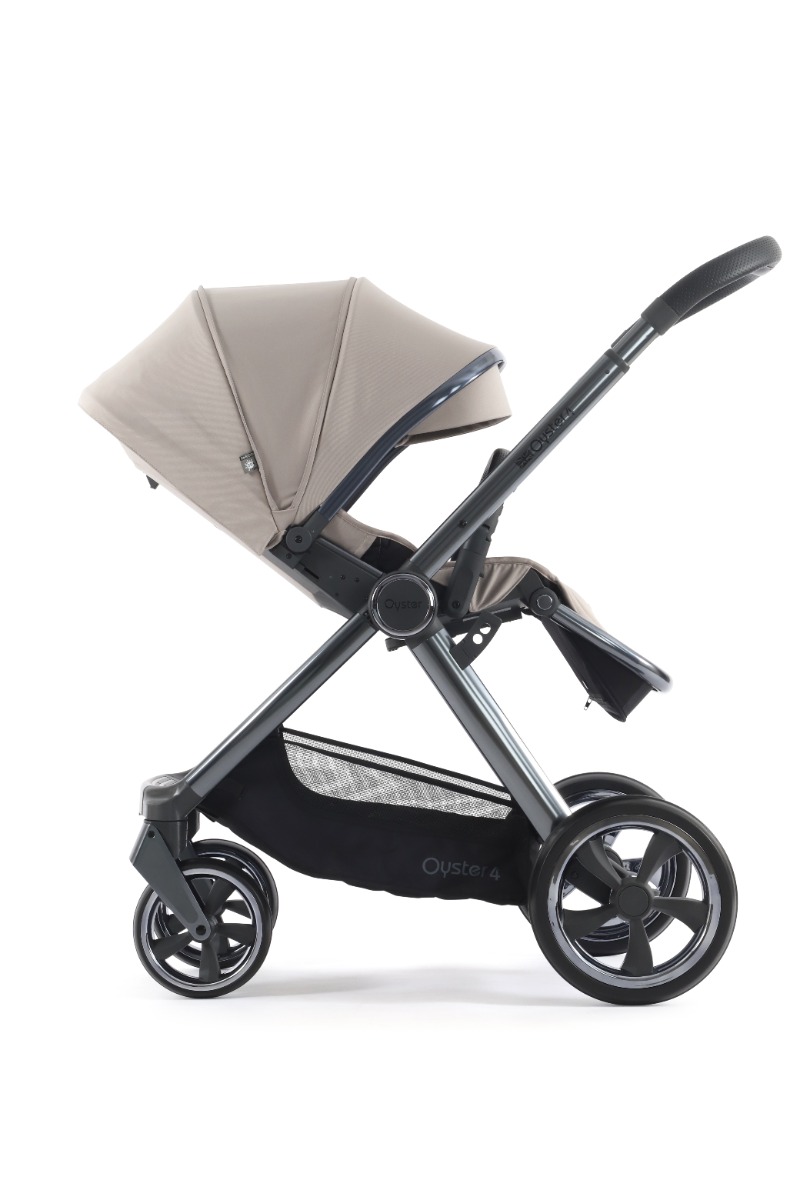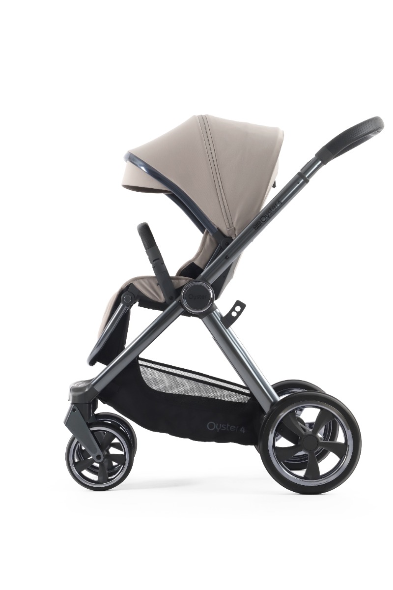 Naslon koji se može spuštati jednom rukom, s opcijom potpuno ravnog položaja za novorođenče, podesivim osloncem za noge, sigurnosnom prečkom, magnetskom kopčom, podesivim naslonom za glavu i pojasevima, kočnicom prilagođenom nošenju sandala ("flip-flop friendly") te košarom za kupovinu kapaciteta 5 kg donose novu razinu praktičnosti. Oyster4 također ima jednostavno podesivu ručku s rasponom visine od 101 do 113 cm.